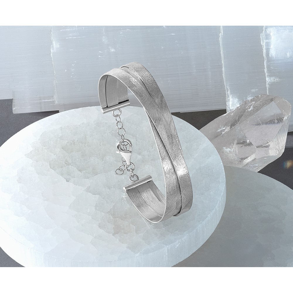 Leslie's Sterling Silver RH-plate Scratch Finish w/Safety Clasp Bangle