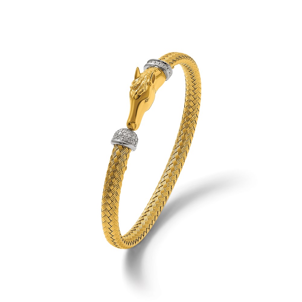 Herco 18KTT Polished Diamond-cut Woven Diamond Horse Cuff Bangle