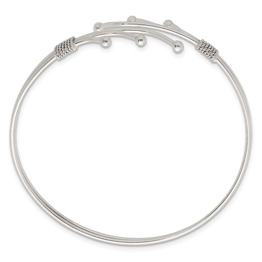 Sterling Silver Polished Twisted and Beaded Fancy Triple Band Cuff Bangle Bracelet
