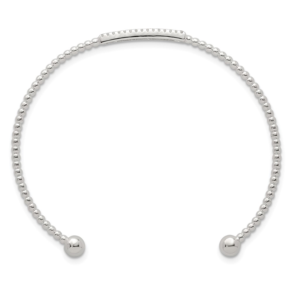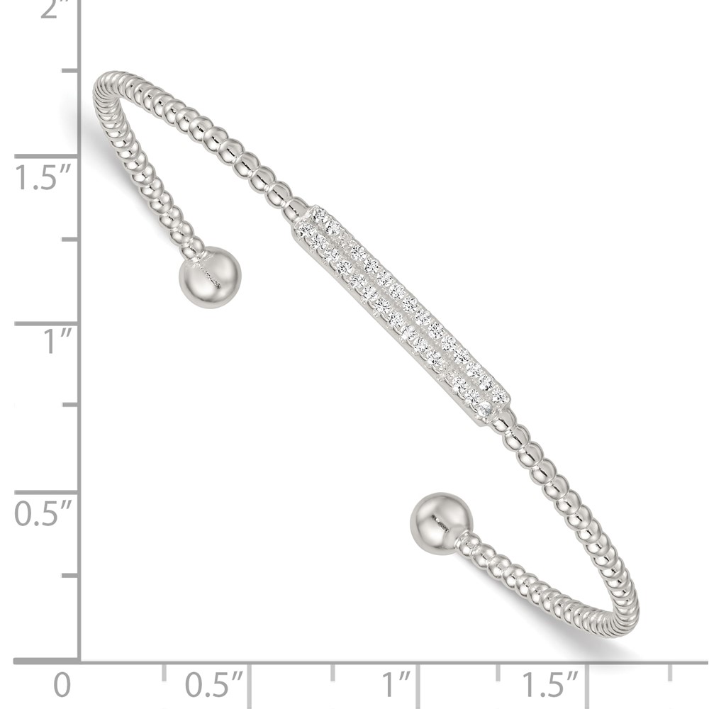 Sterling Silver Polished and Beaded CZ Bar Cuff Bangle