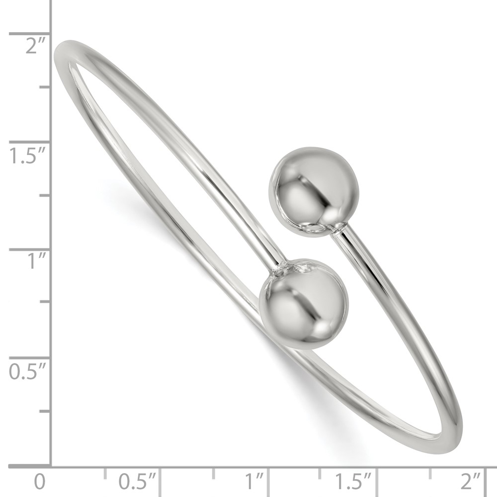 Sterling Silver Polished Ball Ends Flexible Cuff Bangle