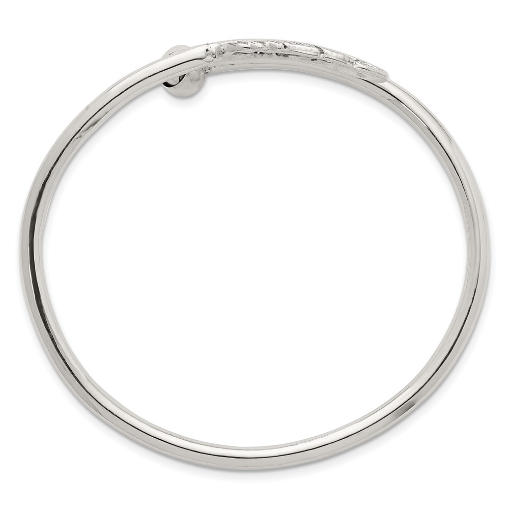 Sterling Silver Polished and Grooved Feather Bypass Cuff Bangle