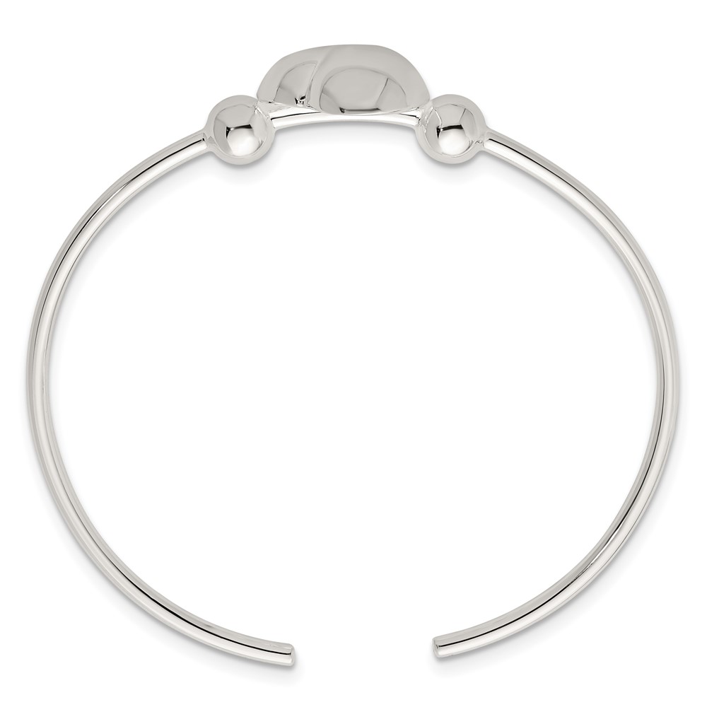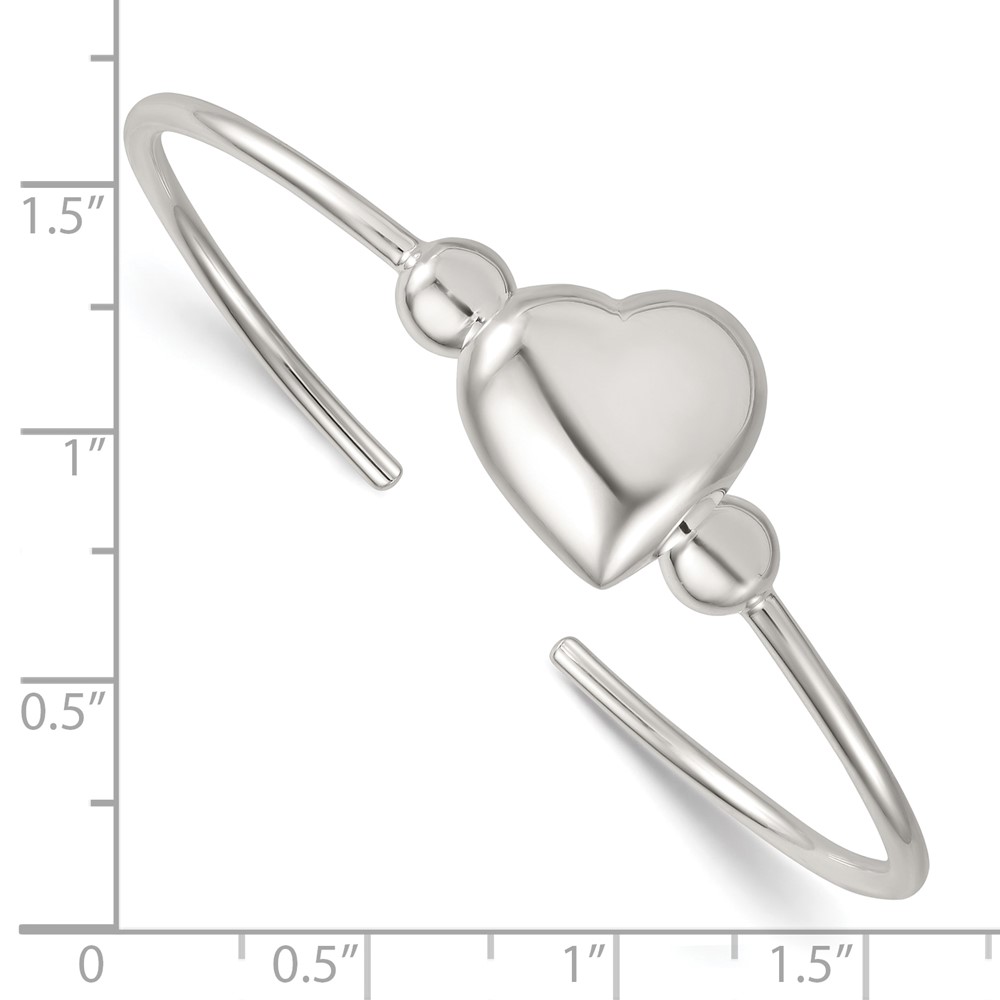 Sterling Silver Polished and Beaded Domed Heart Cuff Bangle