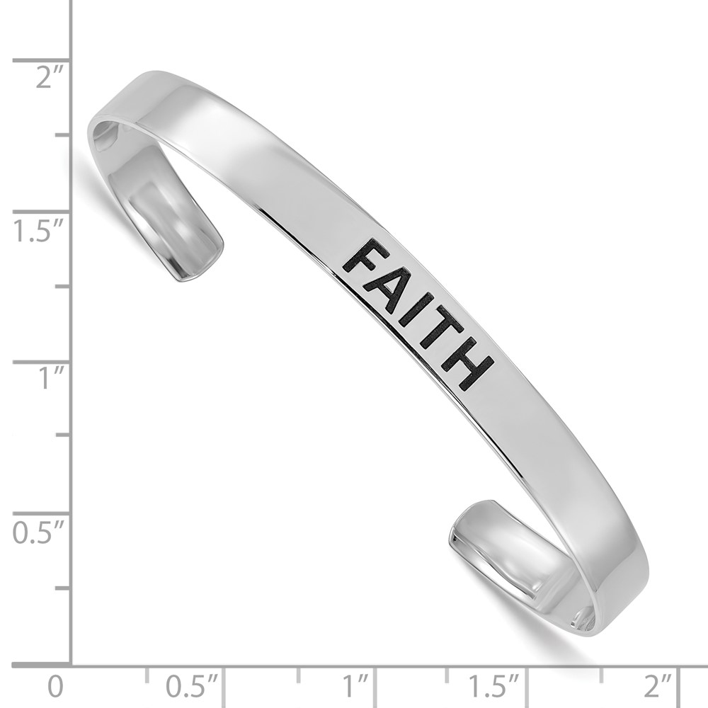 Sterling Silver Rhodium-plated Polished Enameled FAITH Cuff Bangle
