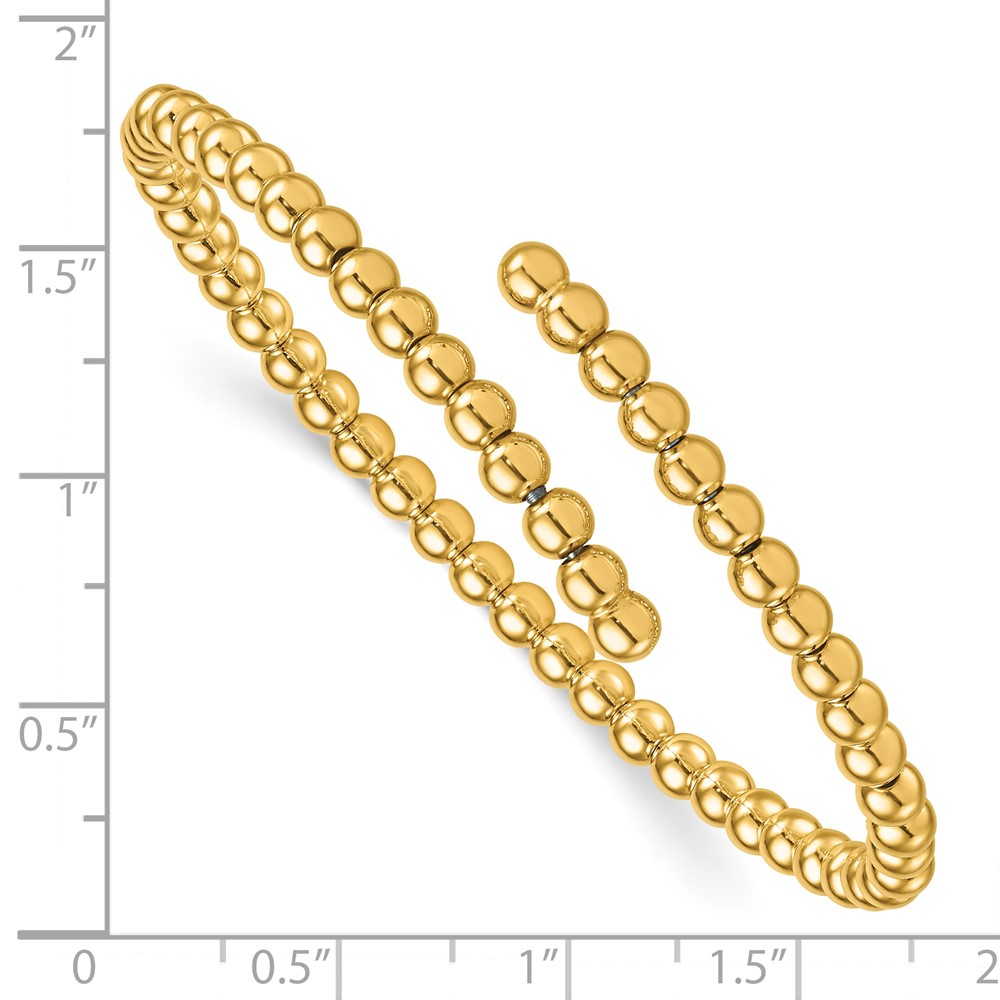 Herco 14K Polished Beaded Bypass Flexible Cuff Bangle
