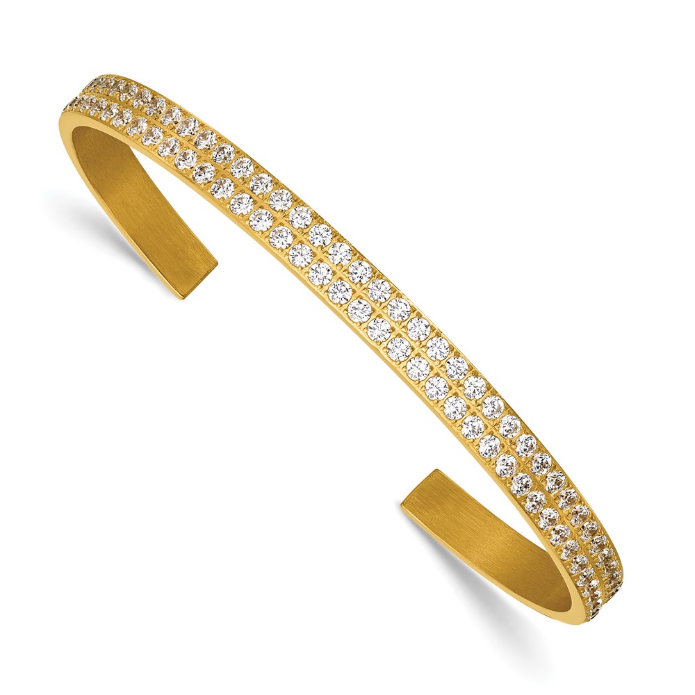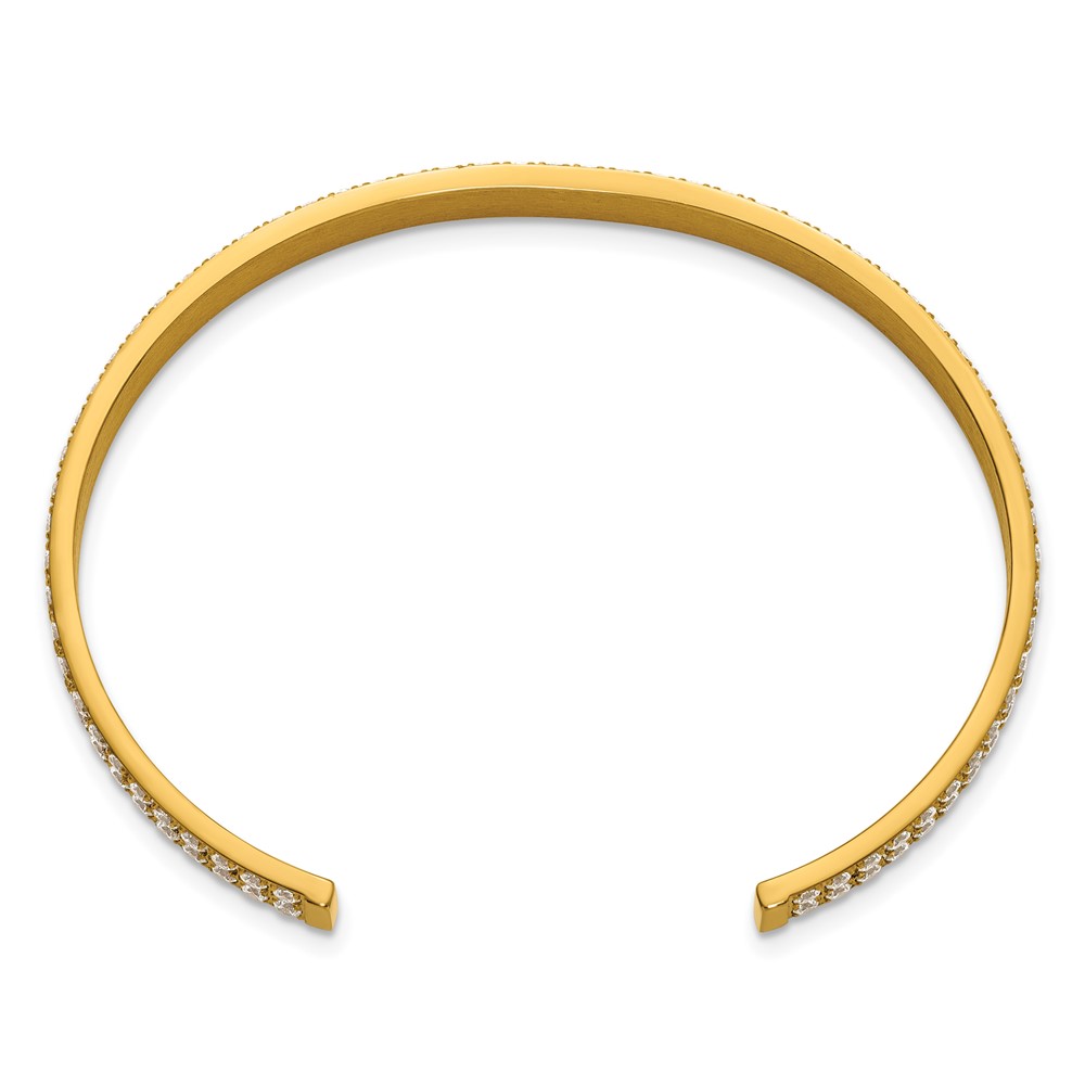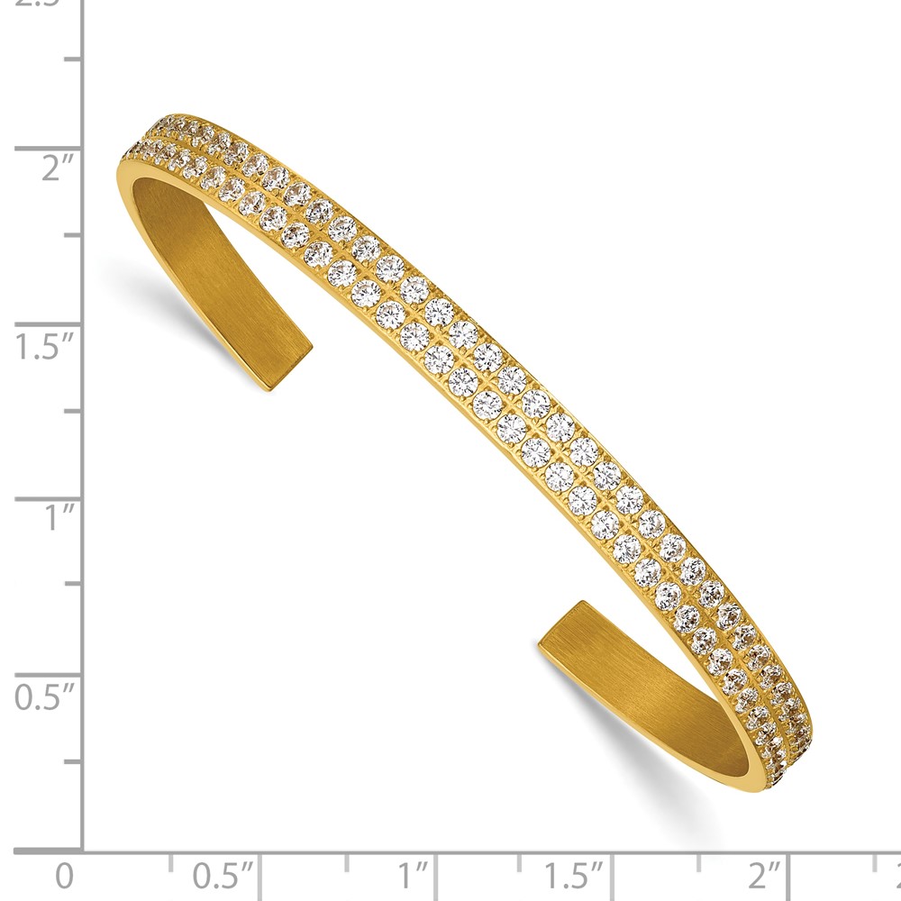 Stainless Steel Polished Yellow IP-plated Double Row CZ 5mm Cuff Bangle