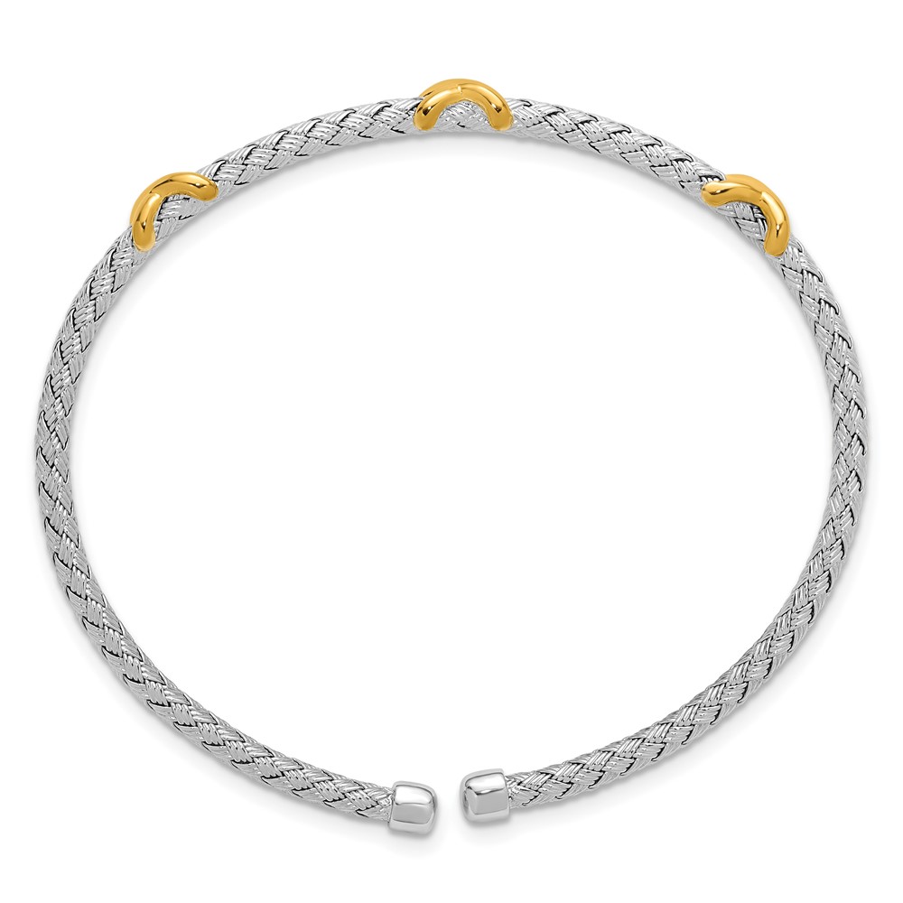 Leslie's SS RH-pl and Gold-pl Polished X Woven Flexible Cuff Bangle