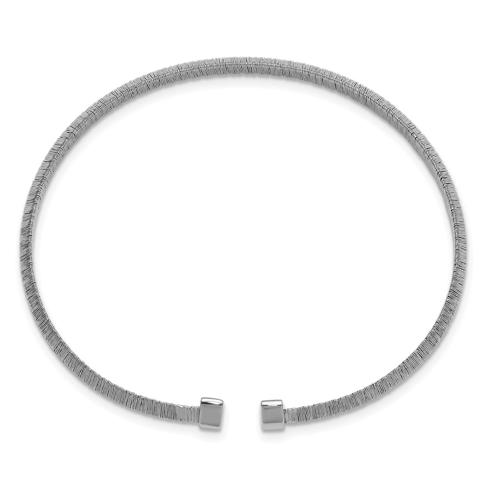 Leslie's Sterling Silver RH-plat Polished/Textured Knife Edge Cuff Bangle