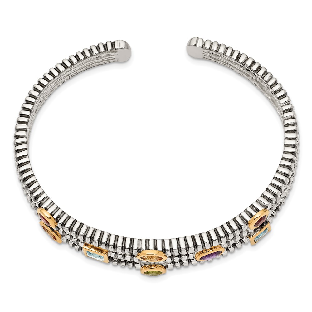Shey Couture Sterling Silver with 14K Accent Antiqued Bezel .36Amethyst/.55Blue Topaz/.18Citrine/.35Garnet/.30Peridot Cuff Bracelet