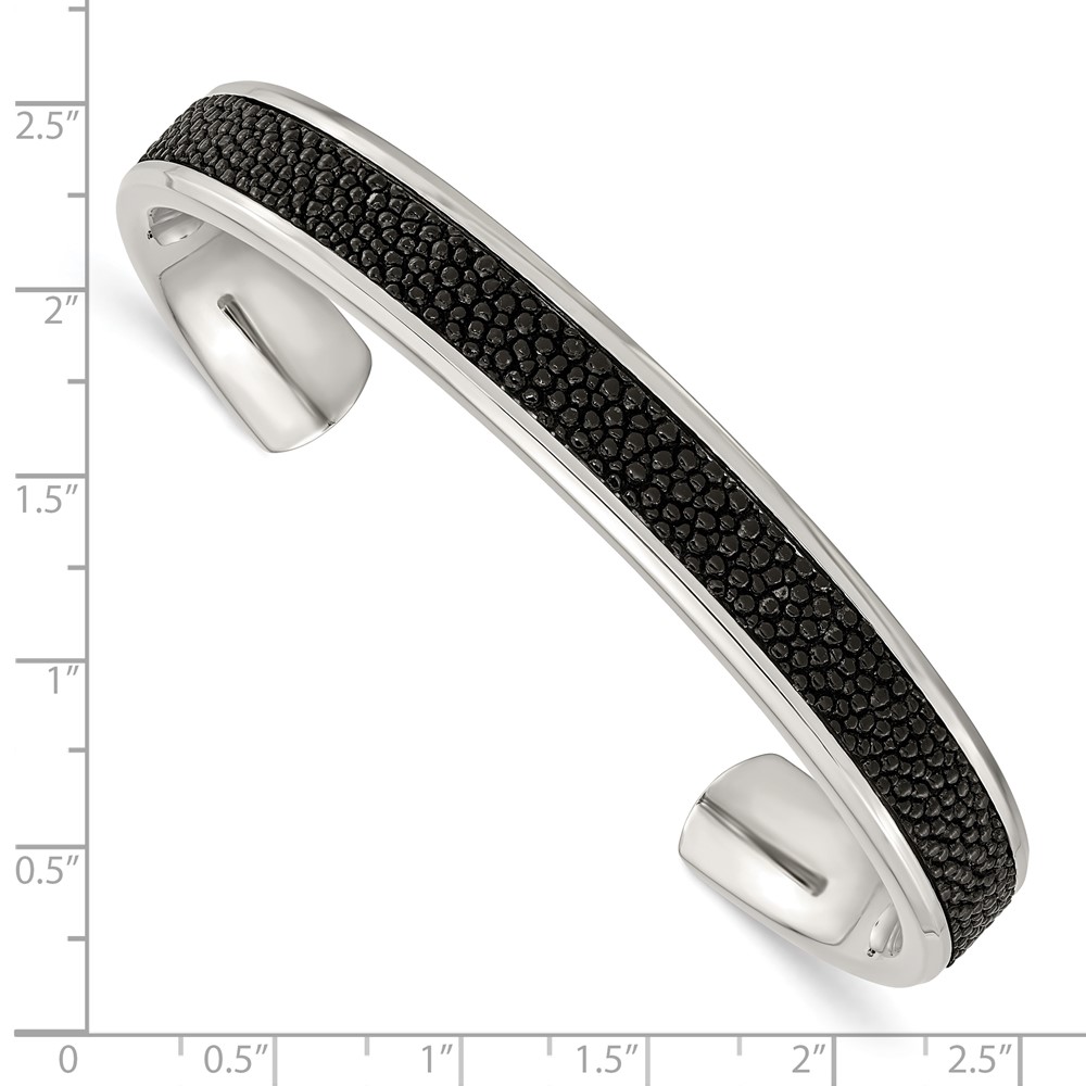 Chisel Stainless Steel Polished with Genuine Stingray Inlay Cuff Bangle