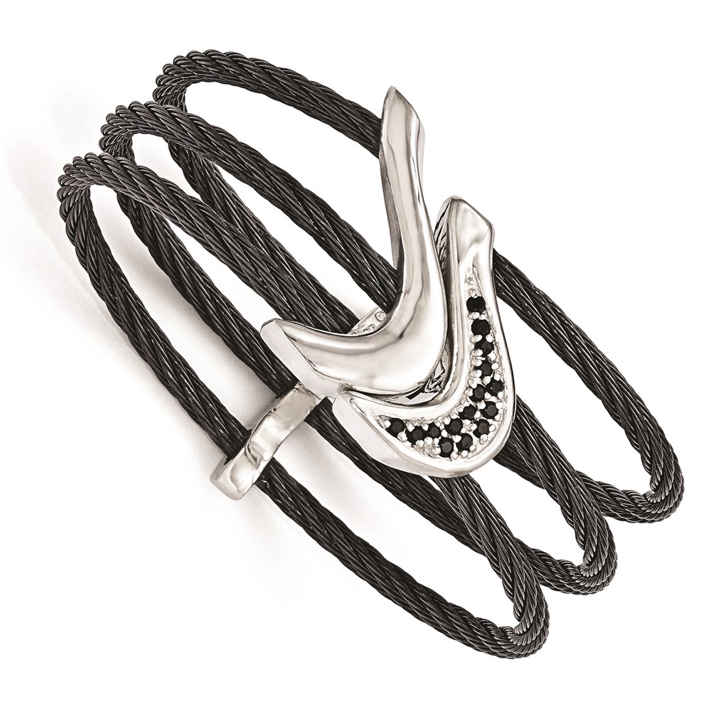 Edward Mirell Titanium Black Ti Sterling Silver Spinel Cable Flexible Cuff