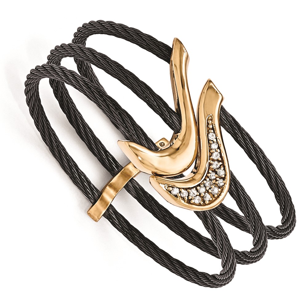 Edward Mirell Black Ti & Bronze White Sapphire Cable Flex Cuff Bangle