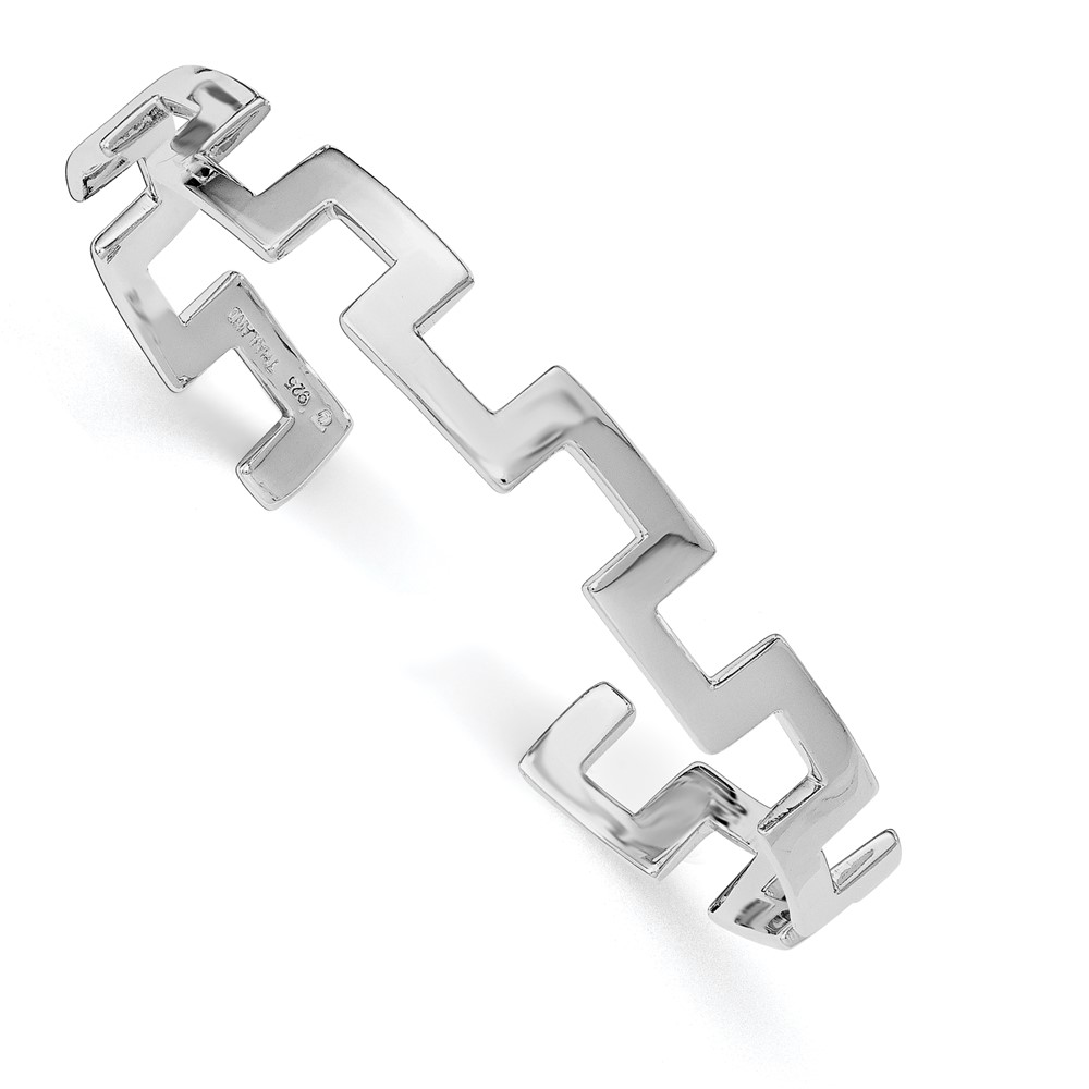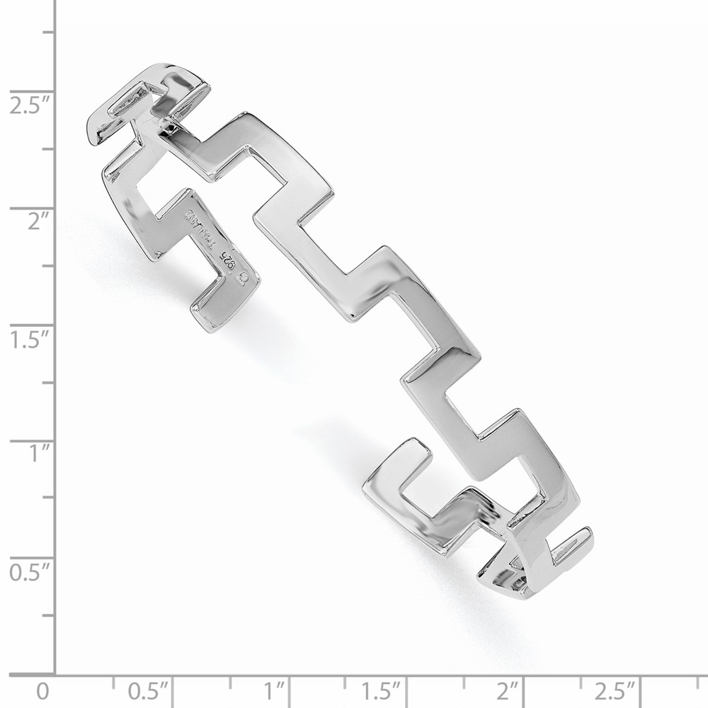 Sterling Silver Rhodium-plated Polished Fancy Cuff Bangle