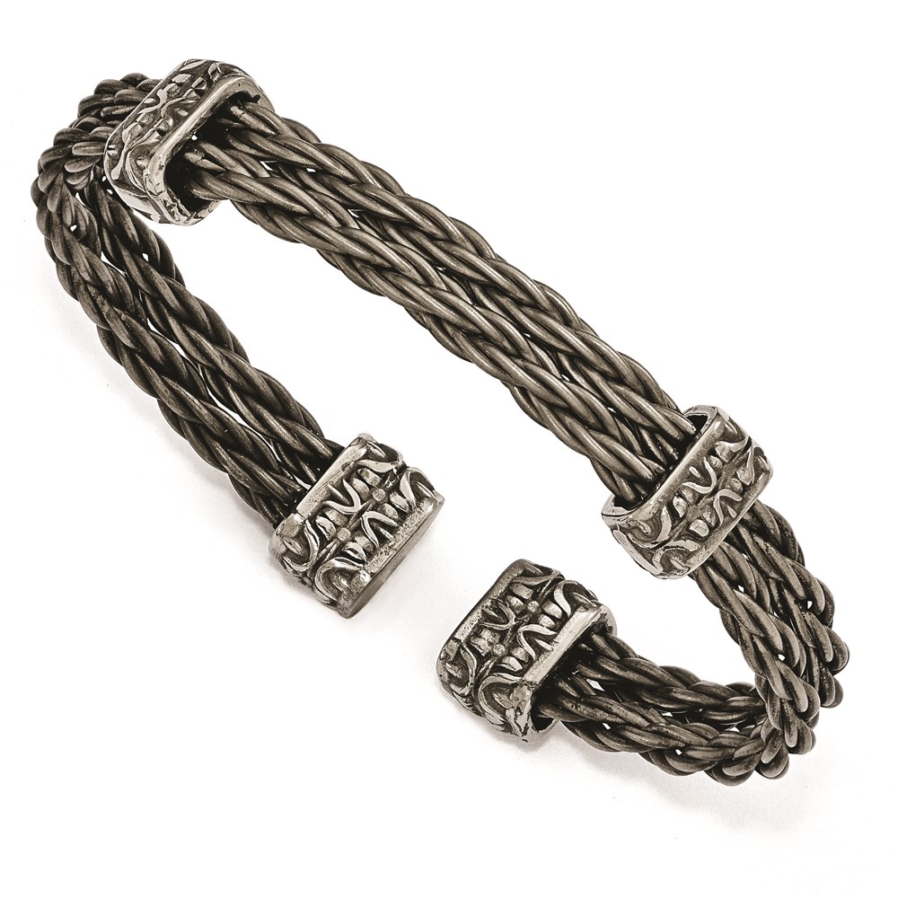 Edward Mirell Titanium Brushed Cablew/ Cast Titanium Accent Cuff Bracelet