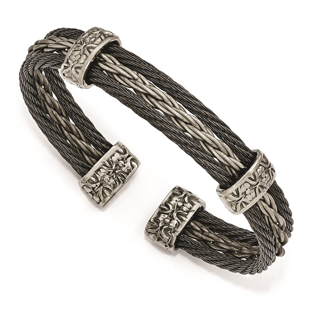 Edward Mirell Titanium Black Memory & Brushed Cable Cuff Bracelet