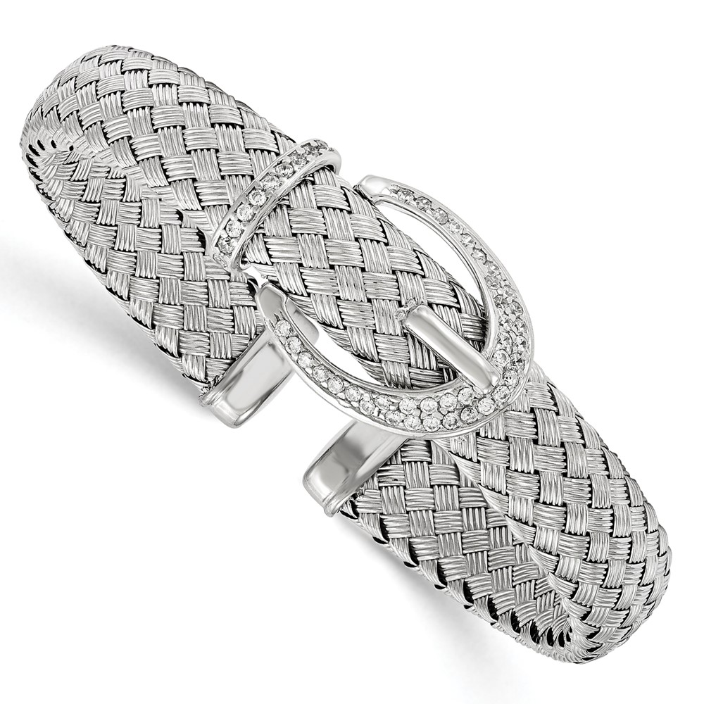 Leslie's Sterling Silver CZ Woven Flexible Cuff Bangle