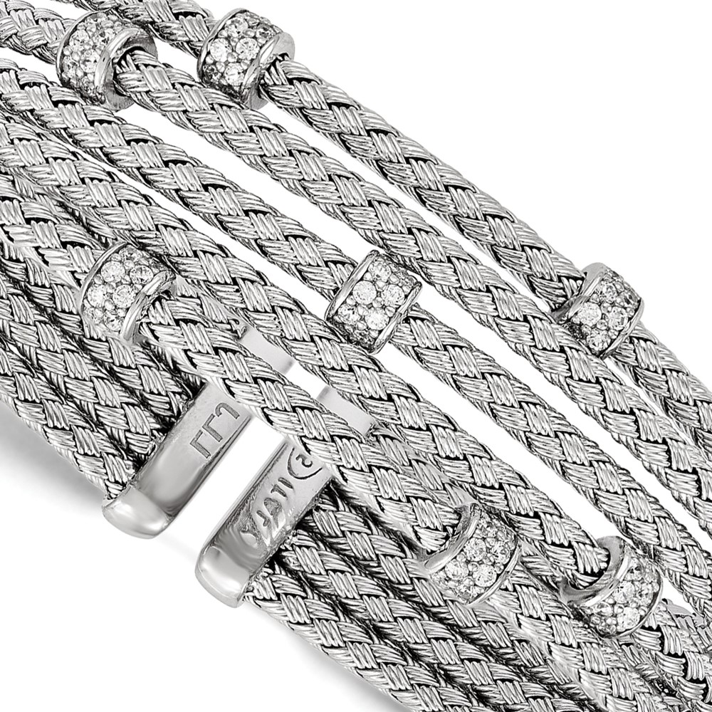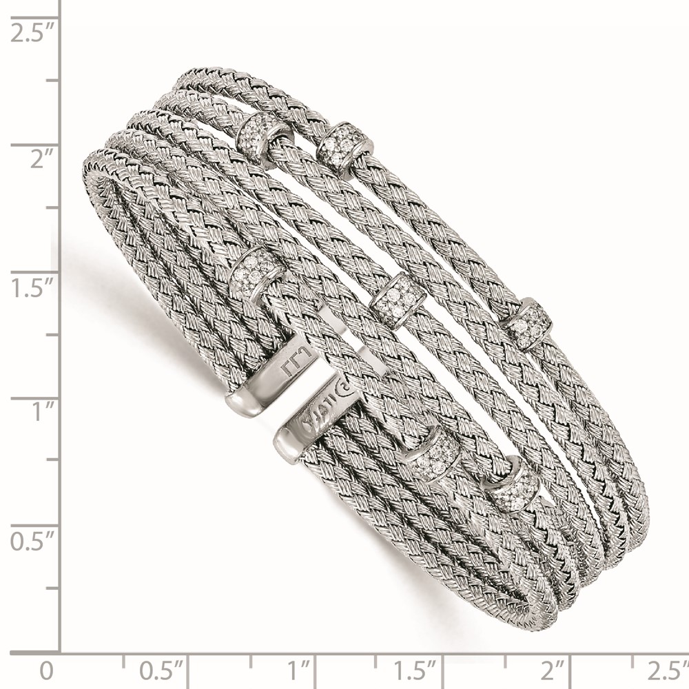Leslie's Sterling Silver Rhodium-plated CZ Woven Flexible Cuff