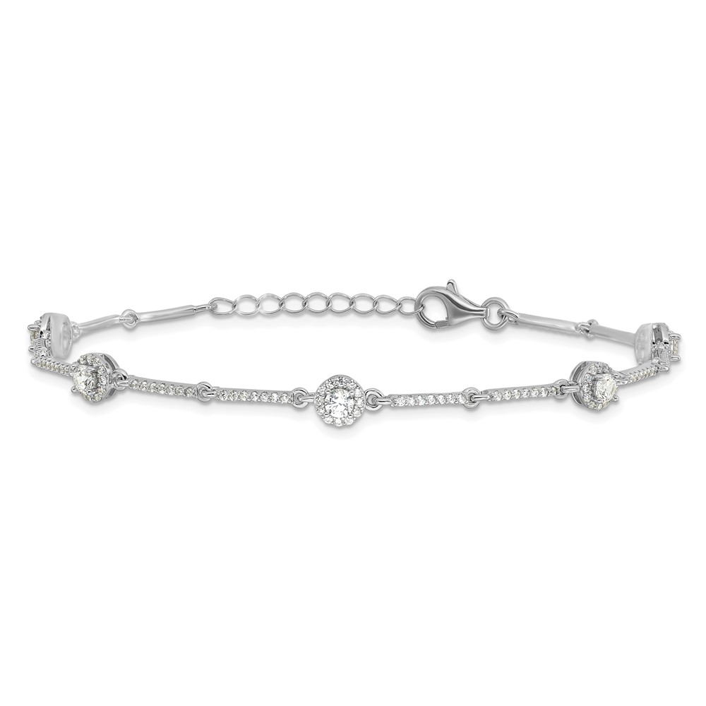 Sterling Silver Rhodium-plated CZ Link 7in w/1in ext. Bracelet
