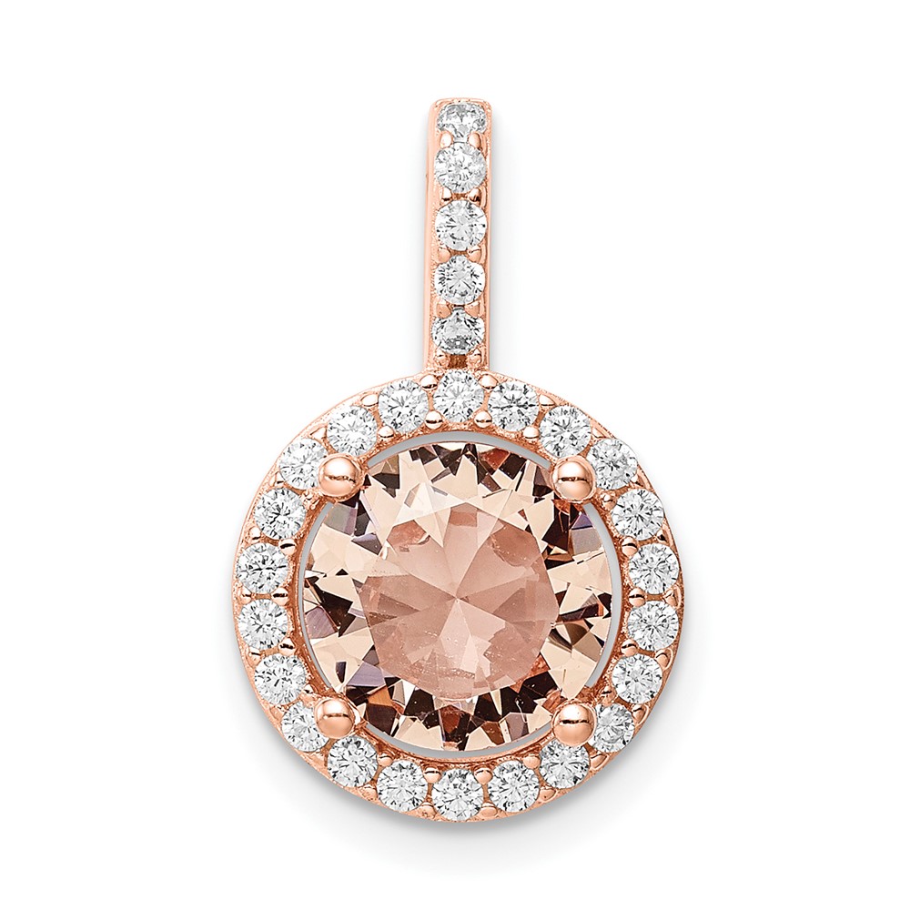 Sterling Silver Rose-tone / CZ Round Halo Pendant