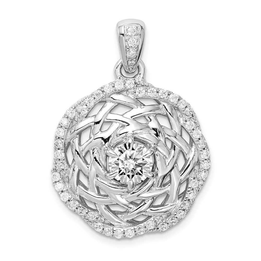 Sterling Silver Rhodium-plated 6mm CZ Center Woven Pendant