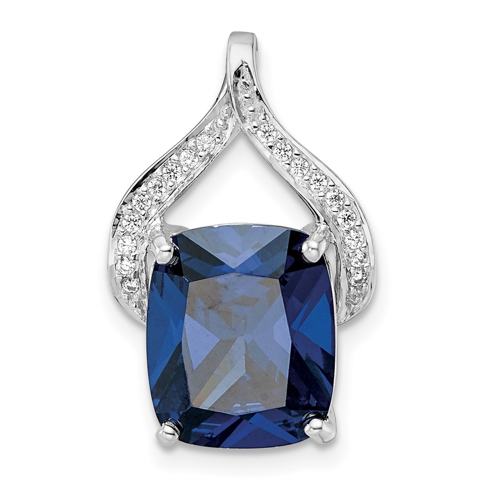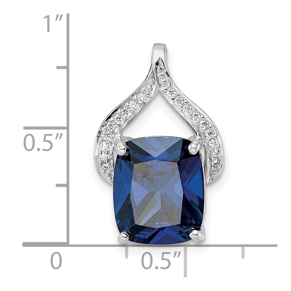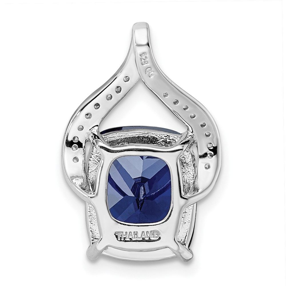 Sterling Silver Rhodium-plated Blue Shaped Stone & CZ Chain Slide