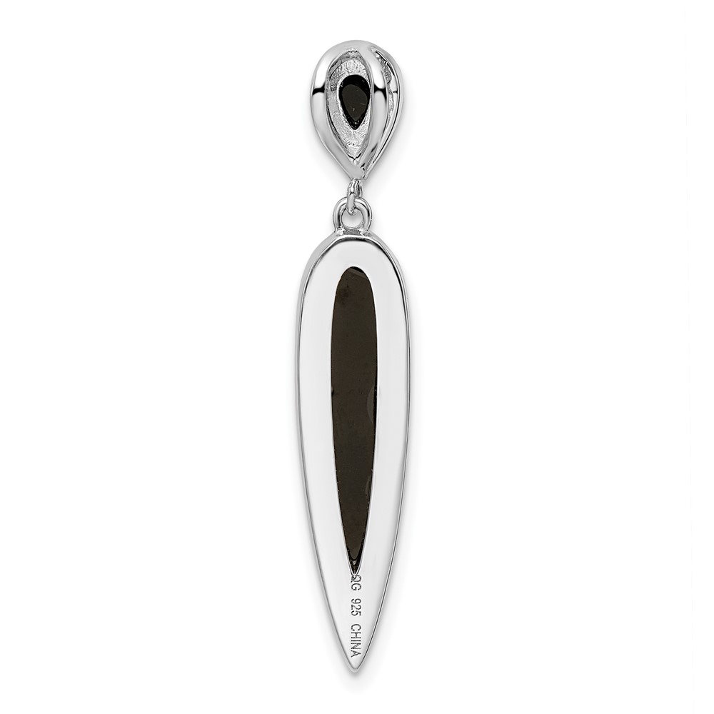 Sterling Silver Rhodium-plated CZ & Black Agate Slide