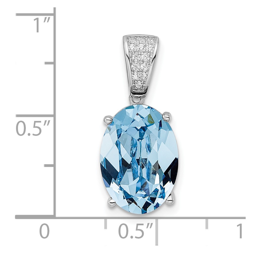 Sterling Silver Rhodium-plated Polished CZ & Blue Crystal Pendant