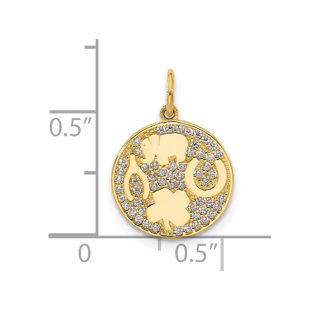 10K Polished CZ Good Luck Medallion Charm