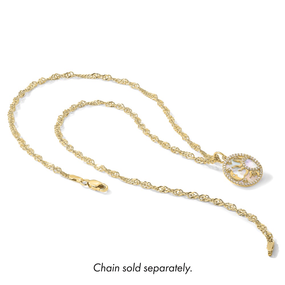 10K Polished CZ and Mother of Pearl Sun Moon and Stars Disc Charm