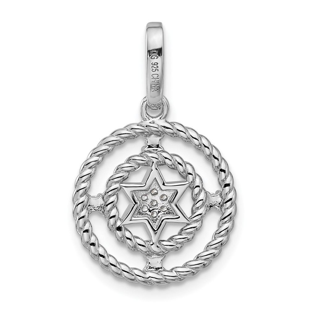 Pure Fire Sterling Silver Rhod-plated Fancy CZ Circle w/Star Pendant