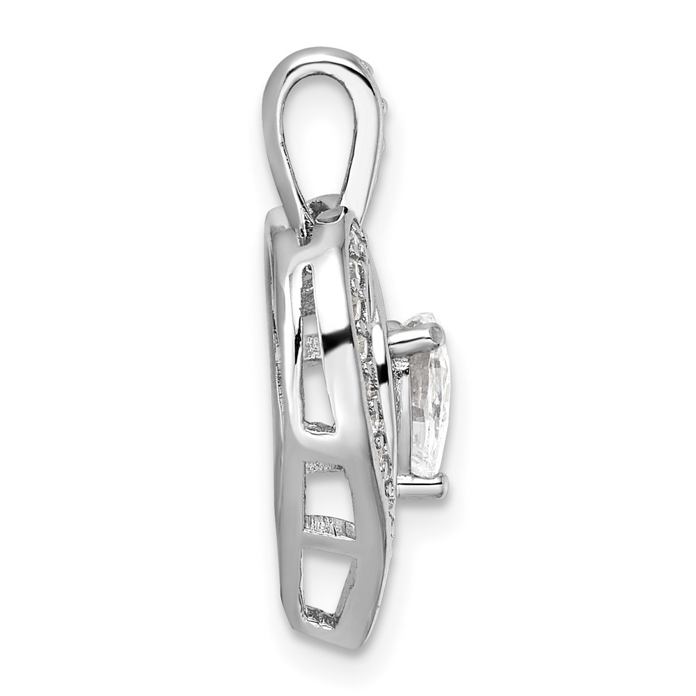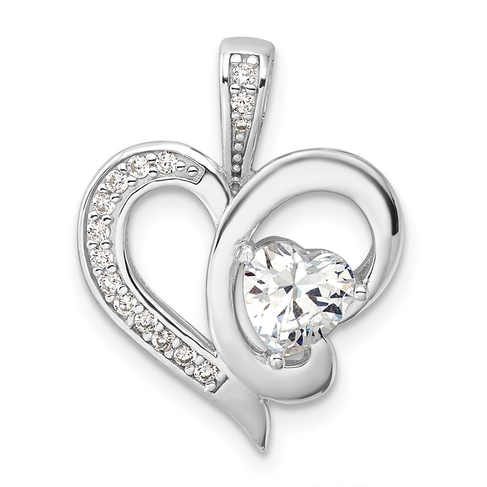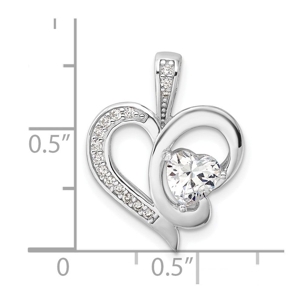 Sterling Silver Rhodium-plated CZ Heart Pendant