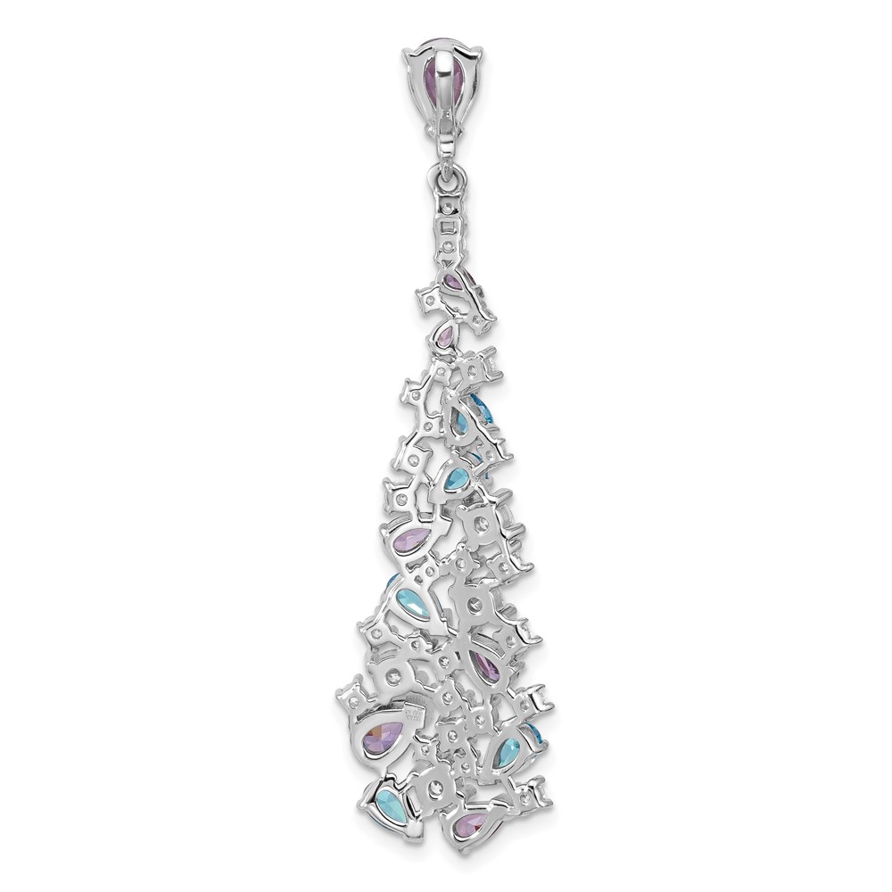 Sterling Silver Rh-plated Polished White/Blue/Purple CZ Teardrop Pendant