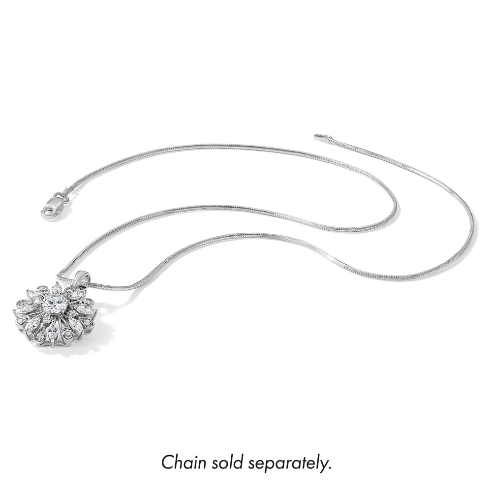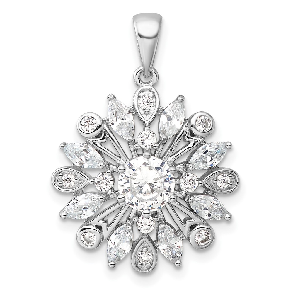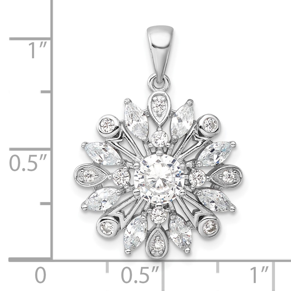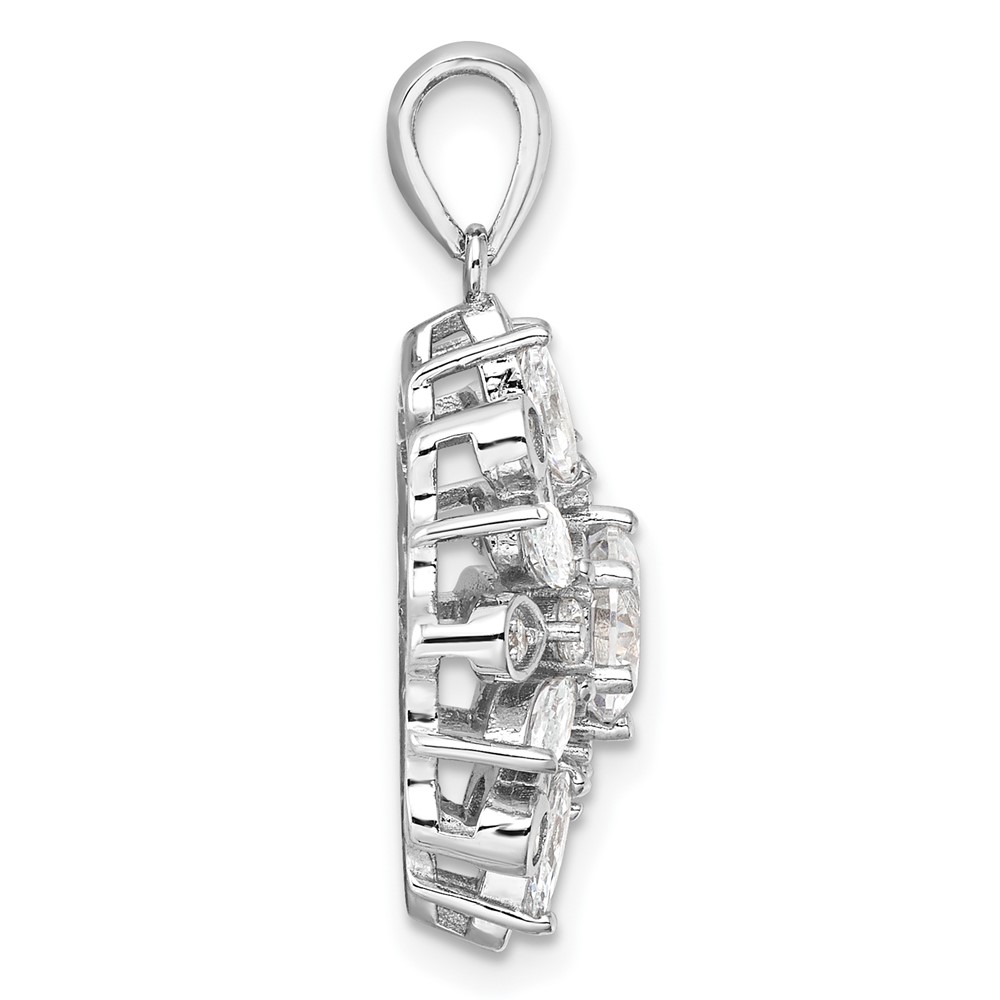 Sterling Silver Rhodium-plated CZ Floral Pendant