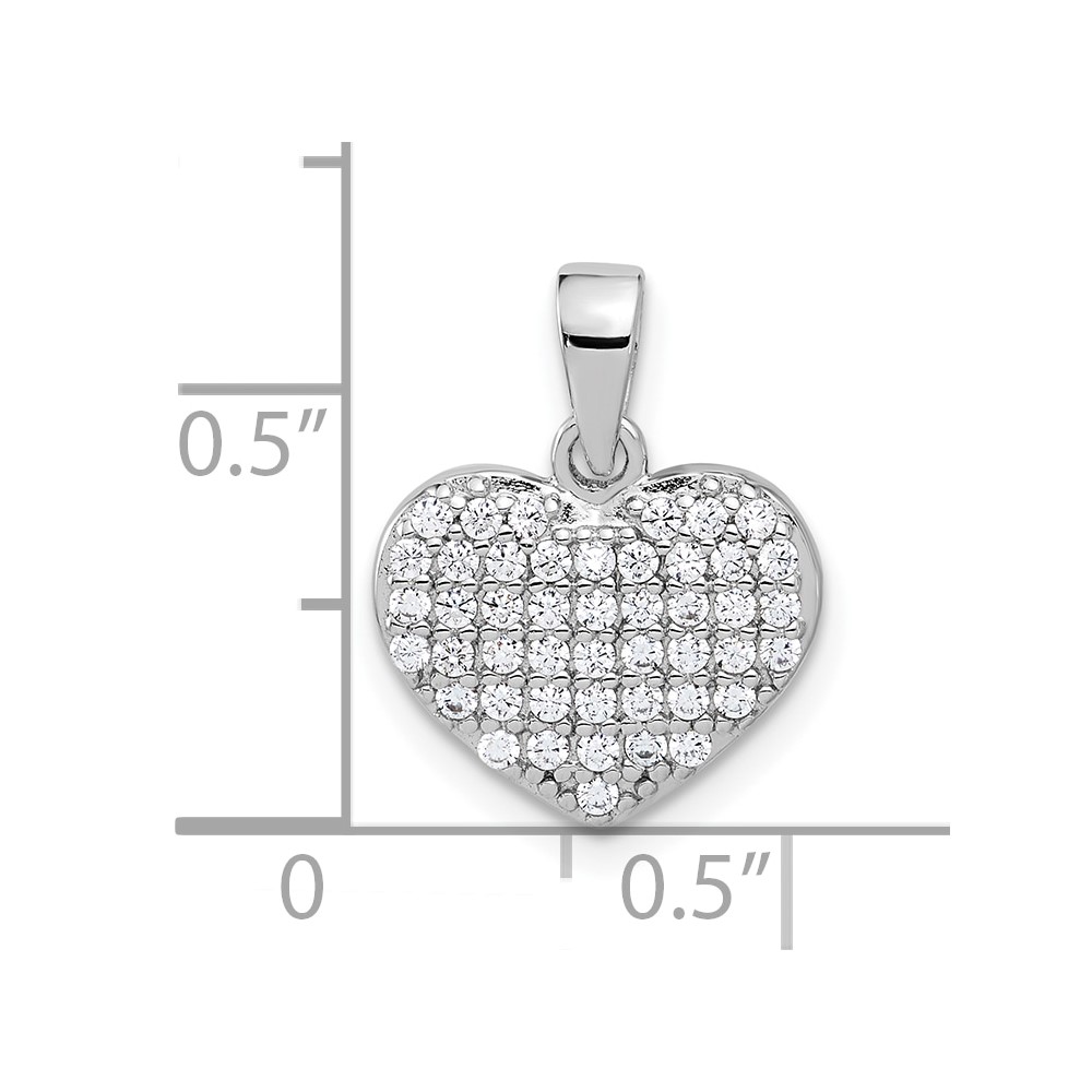 Sterling Silver Rhodium-plated Polished and CZ Pave Heart Pendant
