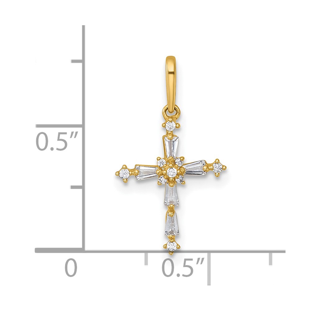 14k Polished Fancy CZ Cross Charm / Pendant