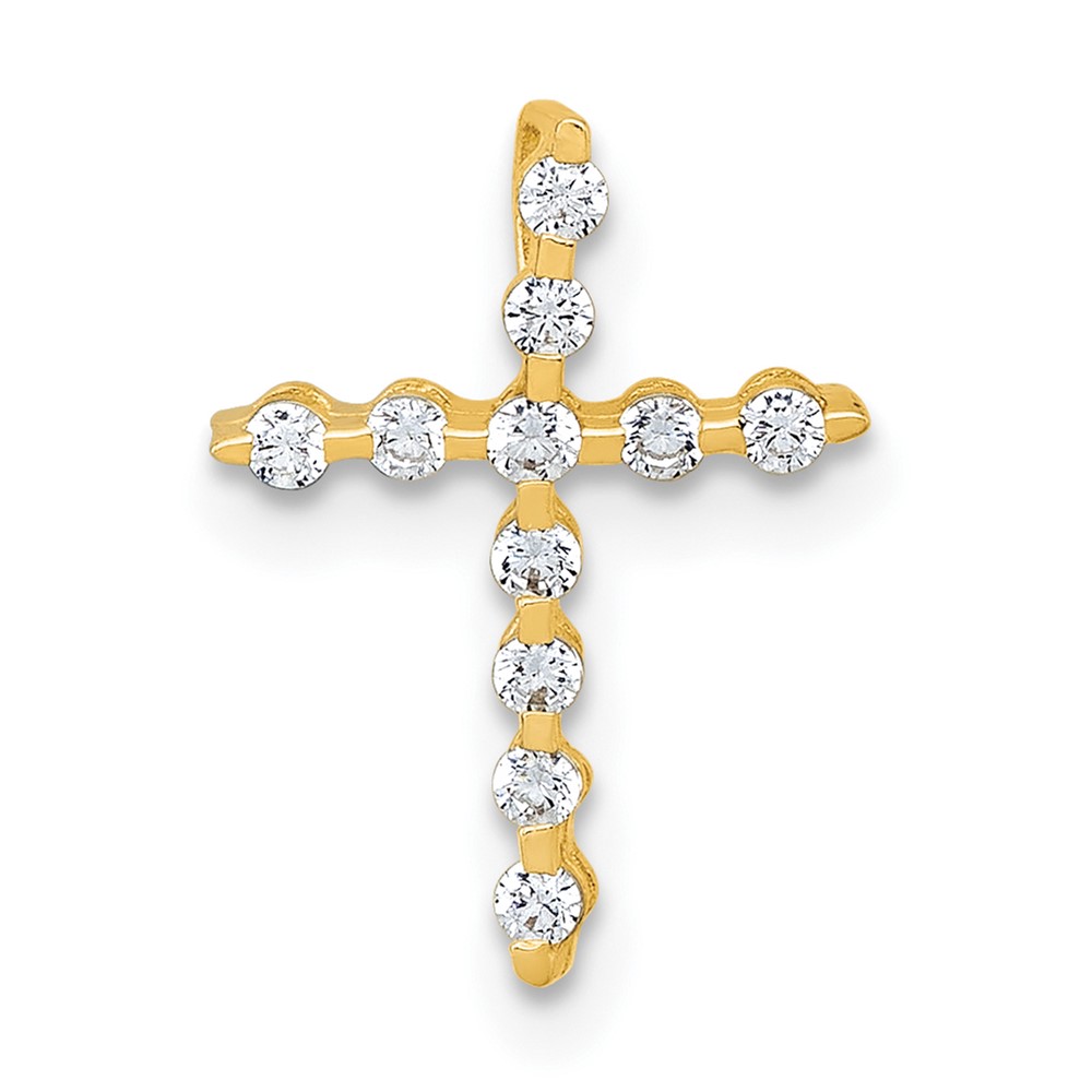 10k Polished CZ Latin Cross Chain Slide Pendant
