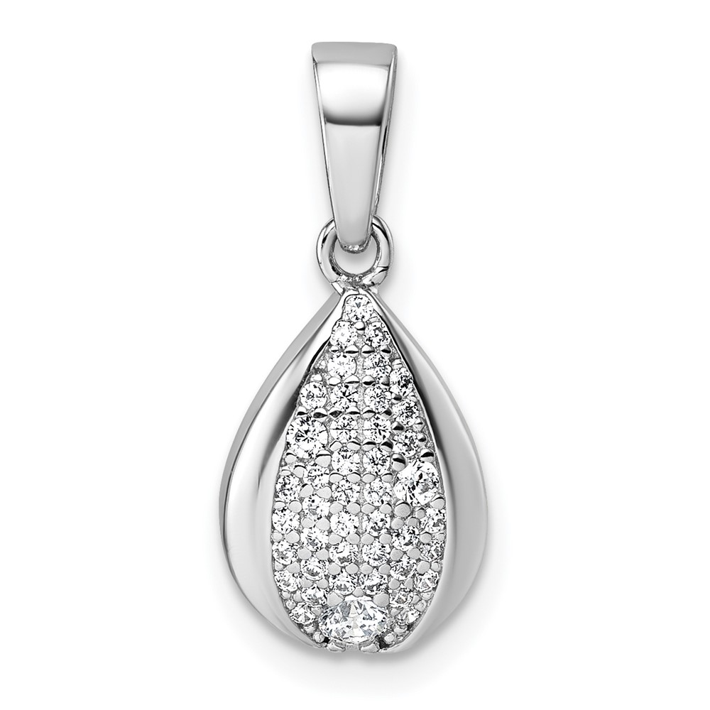 Sterling Silver Rhodium-plated Pave CZ Teardrop Pendant