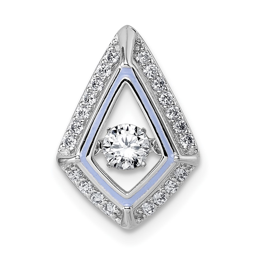 Sterling Silver Rhodium-plated Vibrant Moving CZ with Light Purple Enamel Kite-shape Chain Slide Pendant