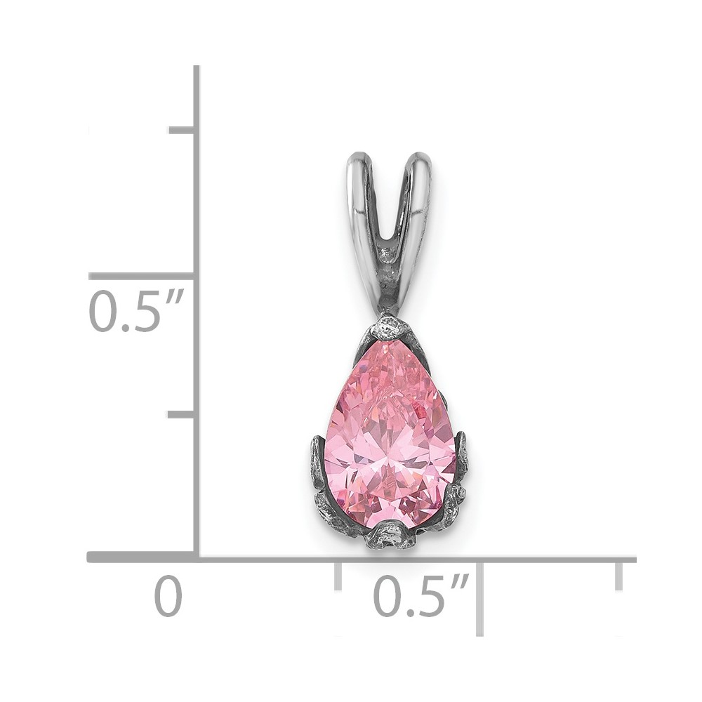 Sterling Silver Antiqued Pink CZ Pendant