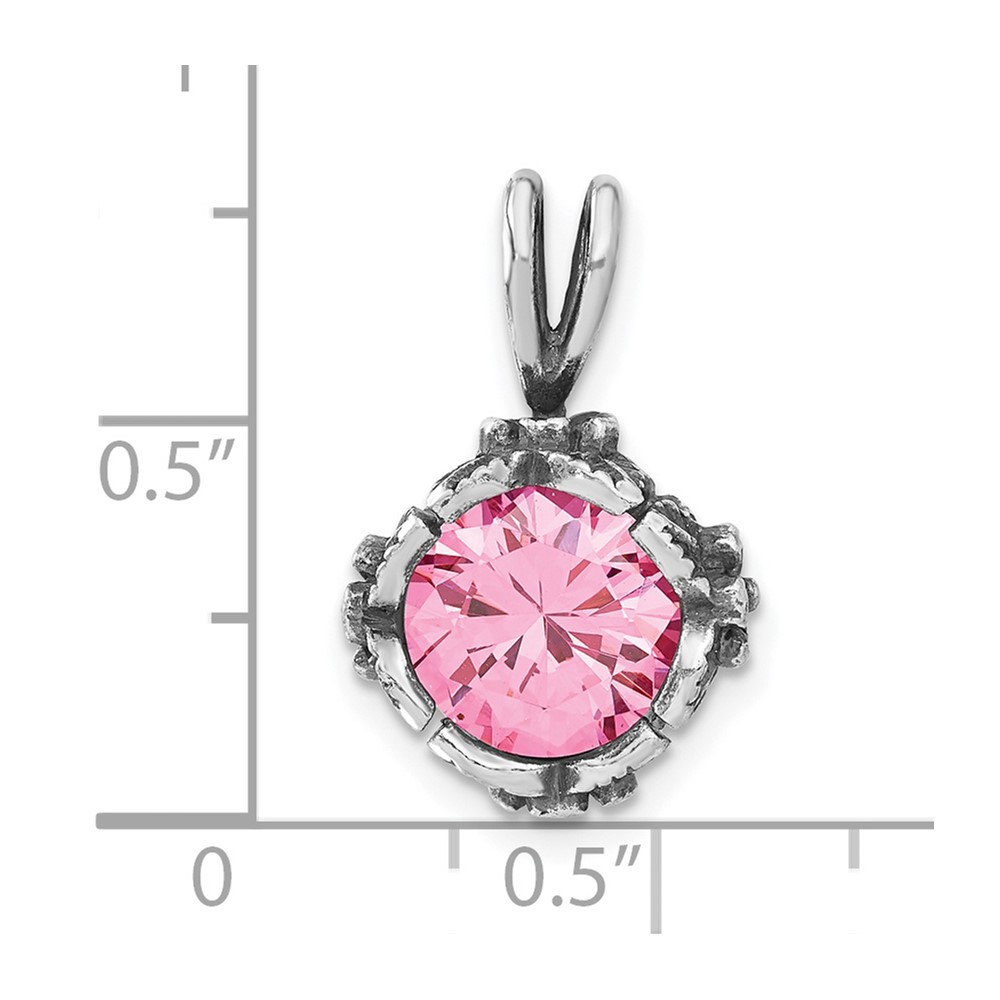 Sterling Silver Antiqued Pink CZ Pendant