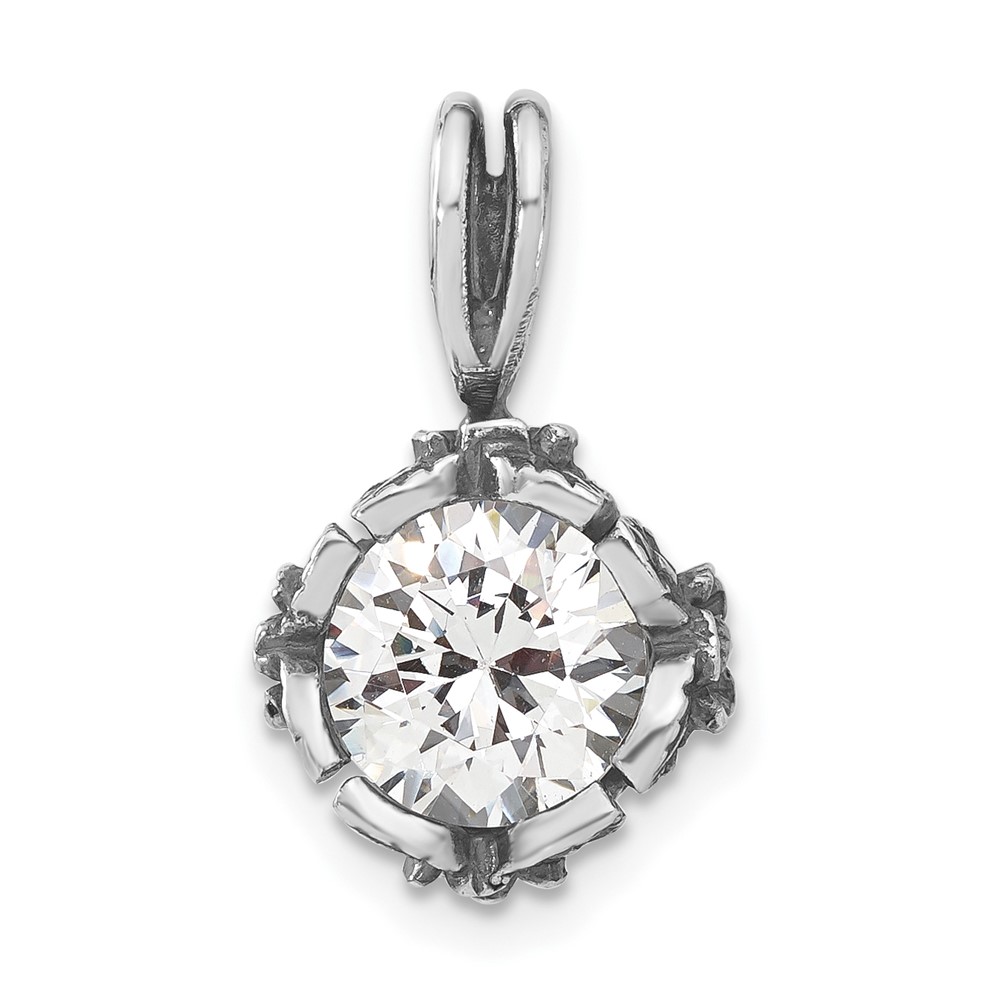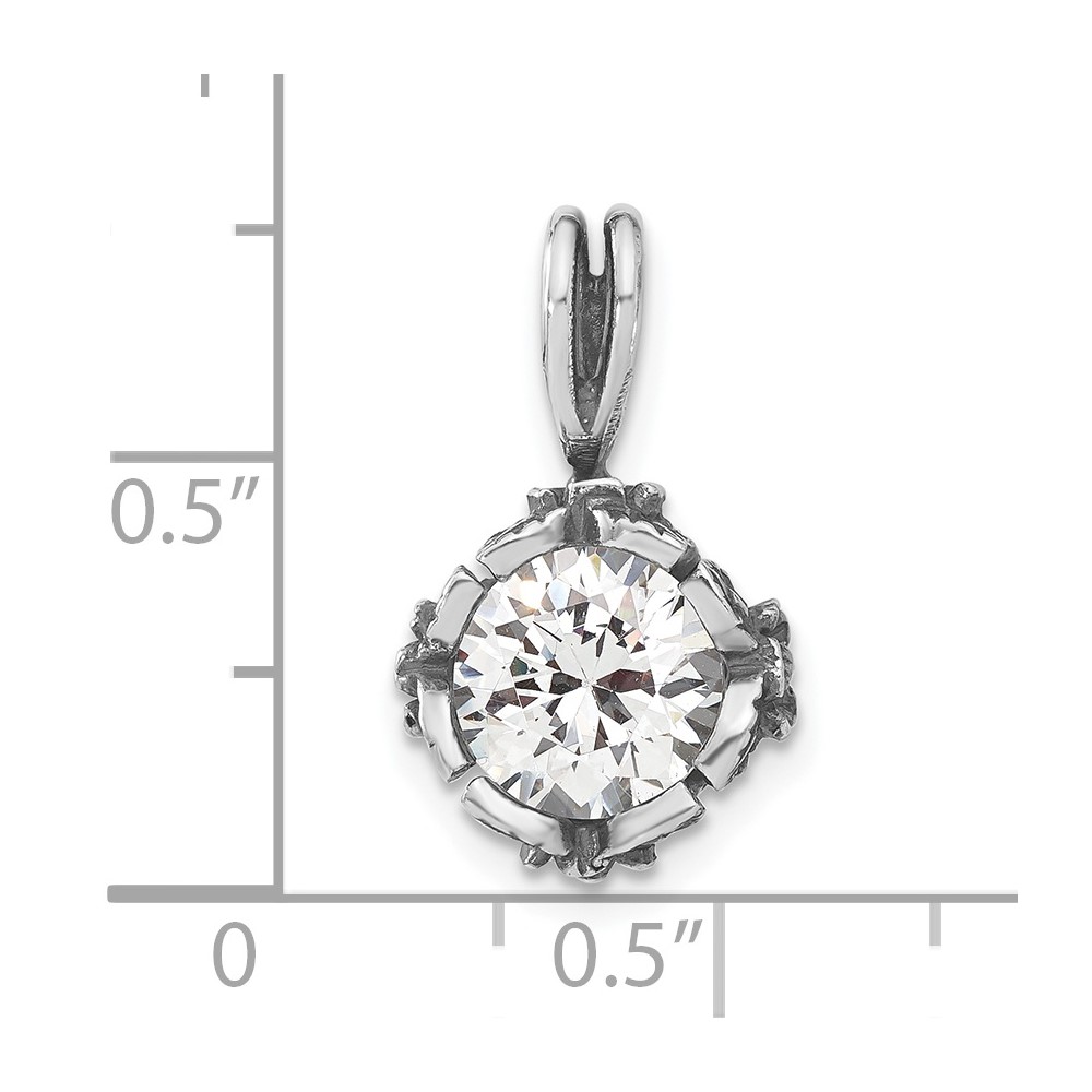 Sterling Silver Antiqued Round CZ Pendant