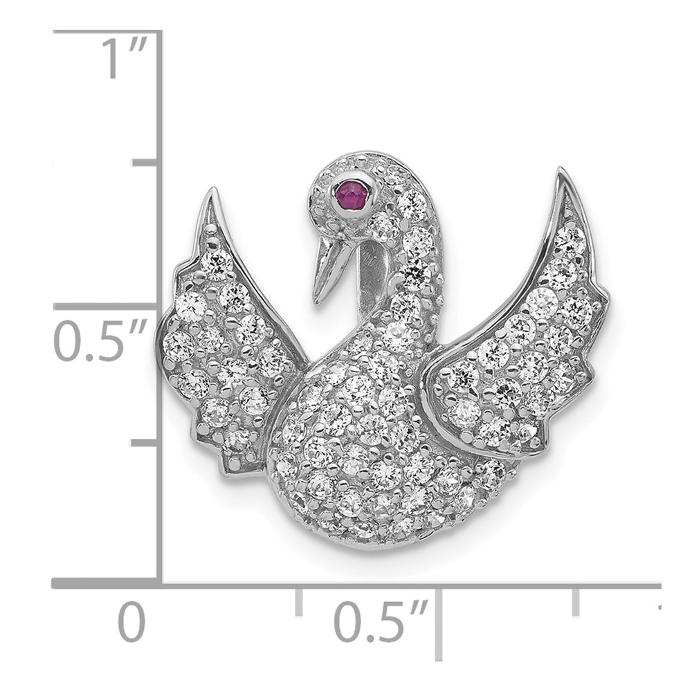Sterling Silver Polished Pink & White CZ Swan Chain Slide Pendant