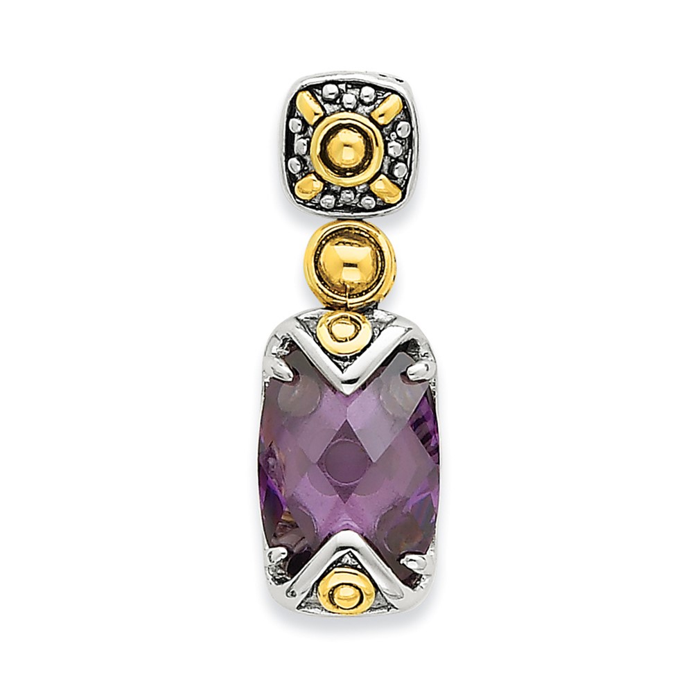 Sterling Silver Gold-plate Antiqued Purple CZ Pendant