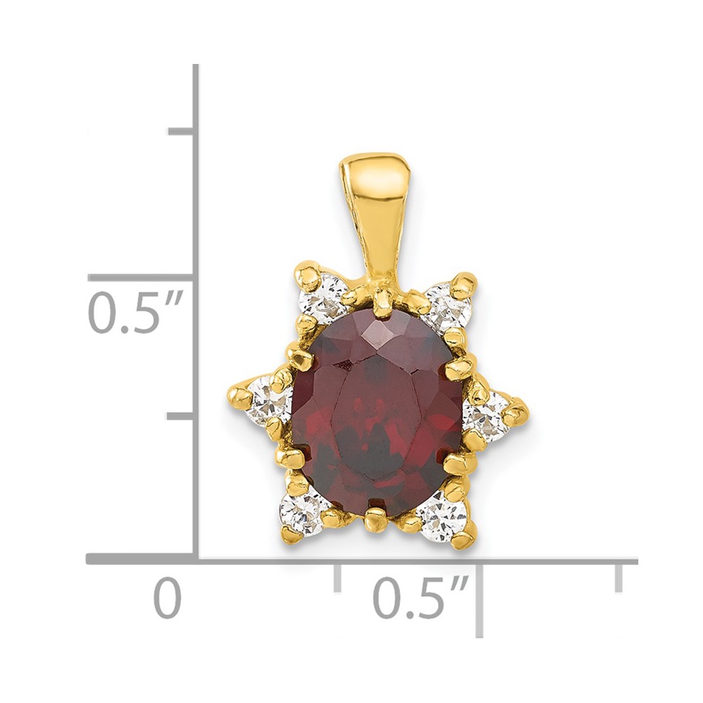 Sterling Silver Flash Gold-plated Red & White CZ Oval Pendant
