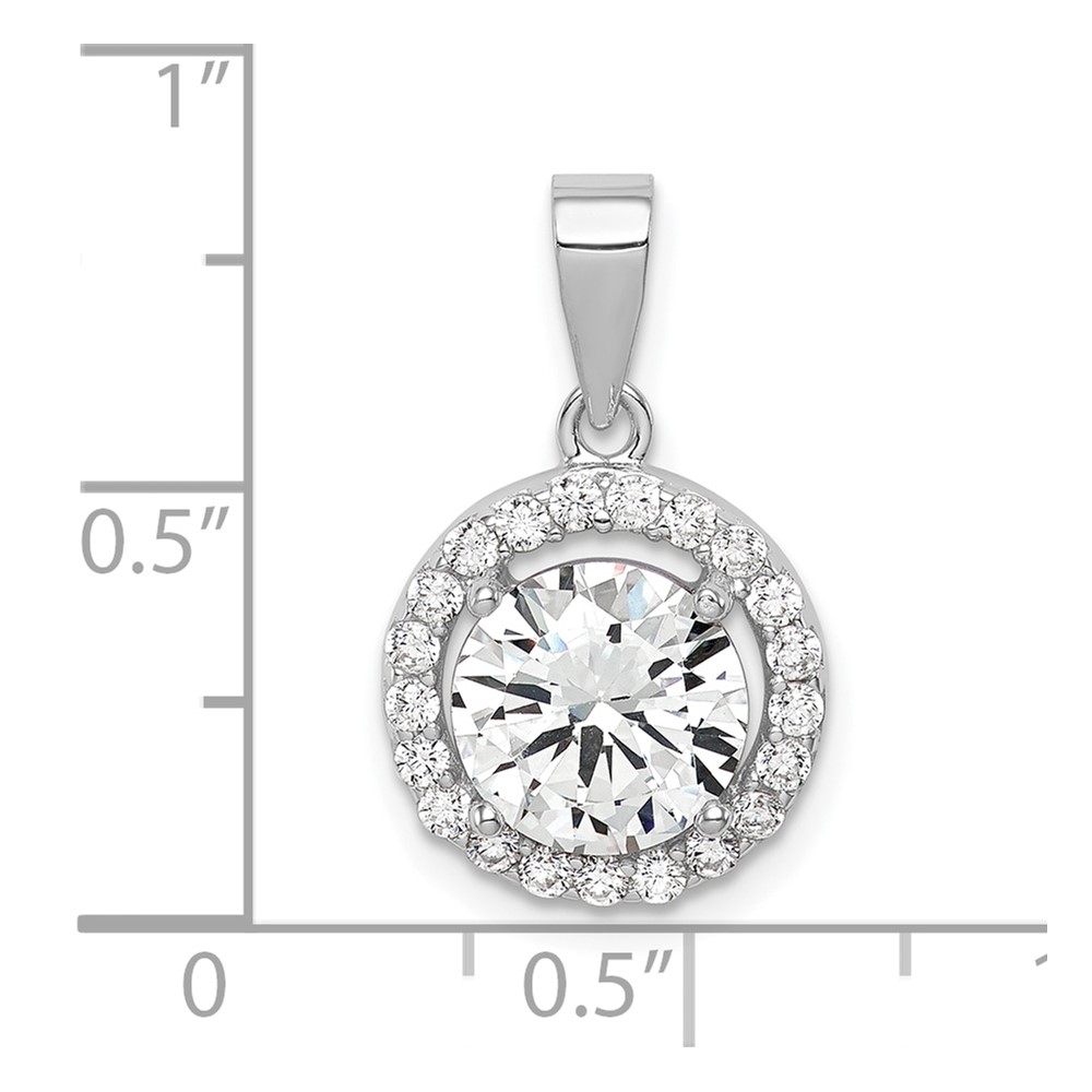 Sterling Silver Rhodium-plated Polished CZ Halo Pendant