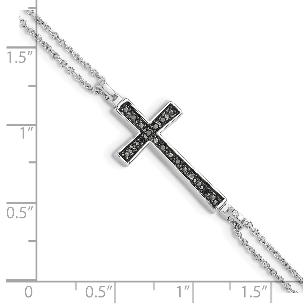 Sterling Silver Rhod 0.1ct. Blk & Wht Dia. Rvsble Cross 2 Strand Bracelet