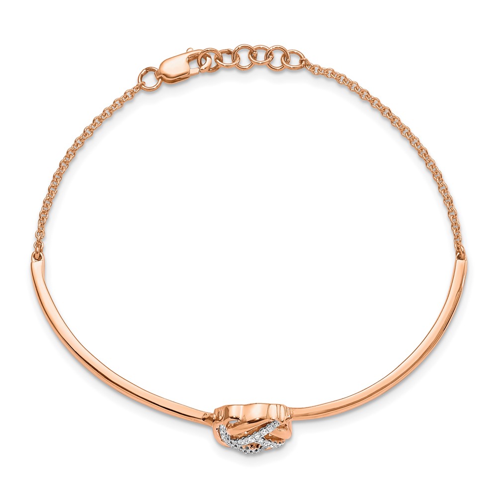 14k Rose Gold Polished Complete 1/8 carat Diamond Love Knot Half-Bangle 7 inch Bracelet with 0.5 inch Extender