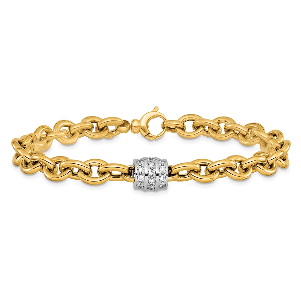 Herco 14K Two-tone Polished Diamond Oval Link 8 inch Bracelet