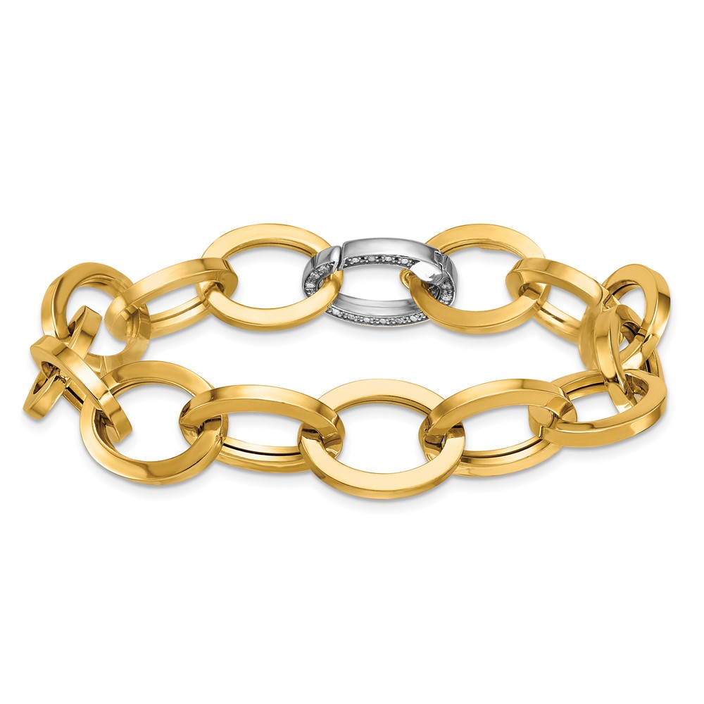 Herco 14K Two-tone Polished Diamond Fancy Oval Link Bracelet