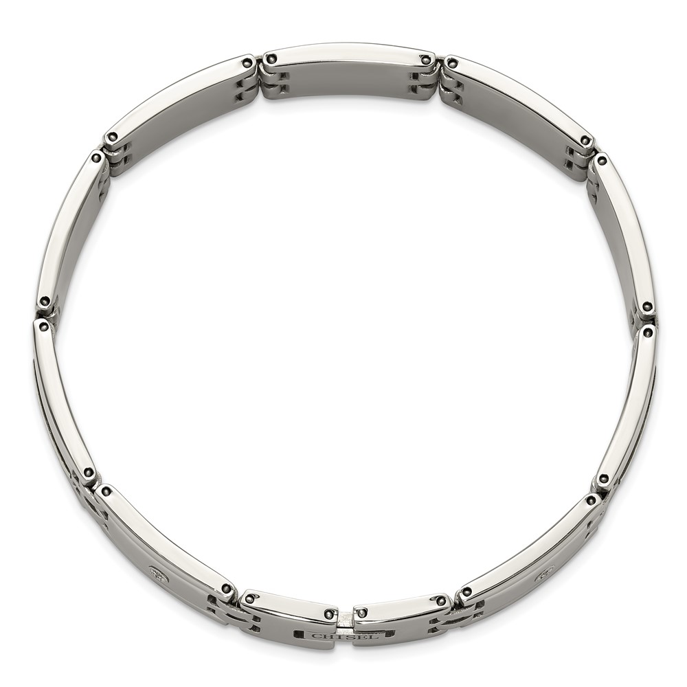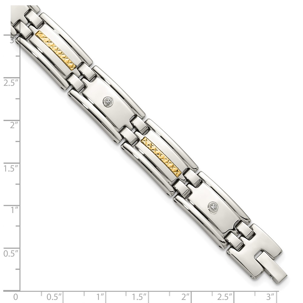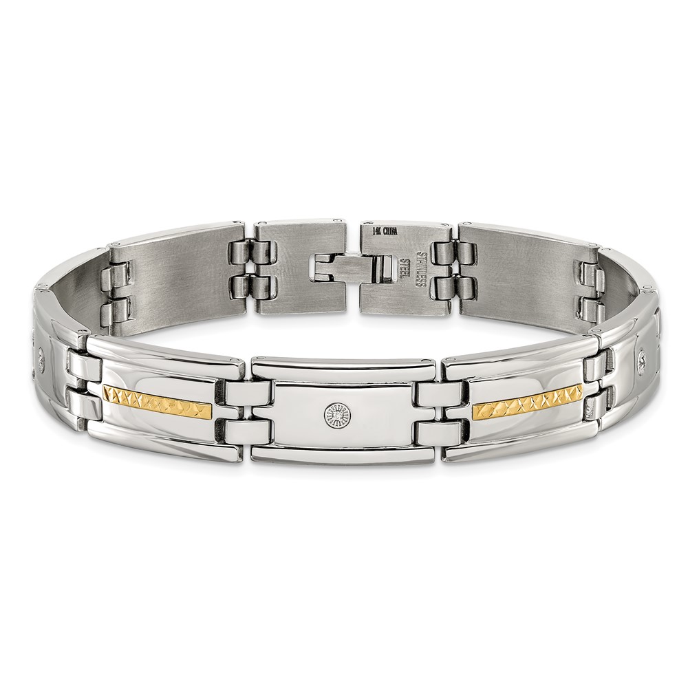 Chisel Stainless Steel Polished with Diamond-cut 14K Gold Accent and .03ct. Diamond 8.75 inch Link Bracelet